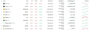Al momento de la publicación de este artículo, 8 de los 10 activos digitales con mayores caídas de precio en las últimas 24 horas son memecoins, tal como se observa en la siguiente imagen provista por CoinMarketCap: